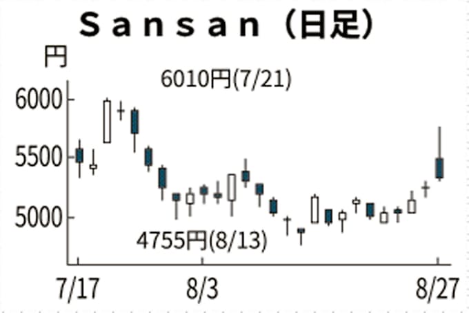 Sansan 1カ月ぶり高値 買収で相乗効果期待 日本経済新聞