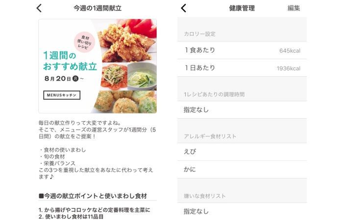 楽しく健康的な献立が叶うアプリ Menus メニューズ Iphone スマートフォン知りたい 便利にお得に使いたい 買いたい